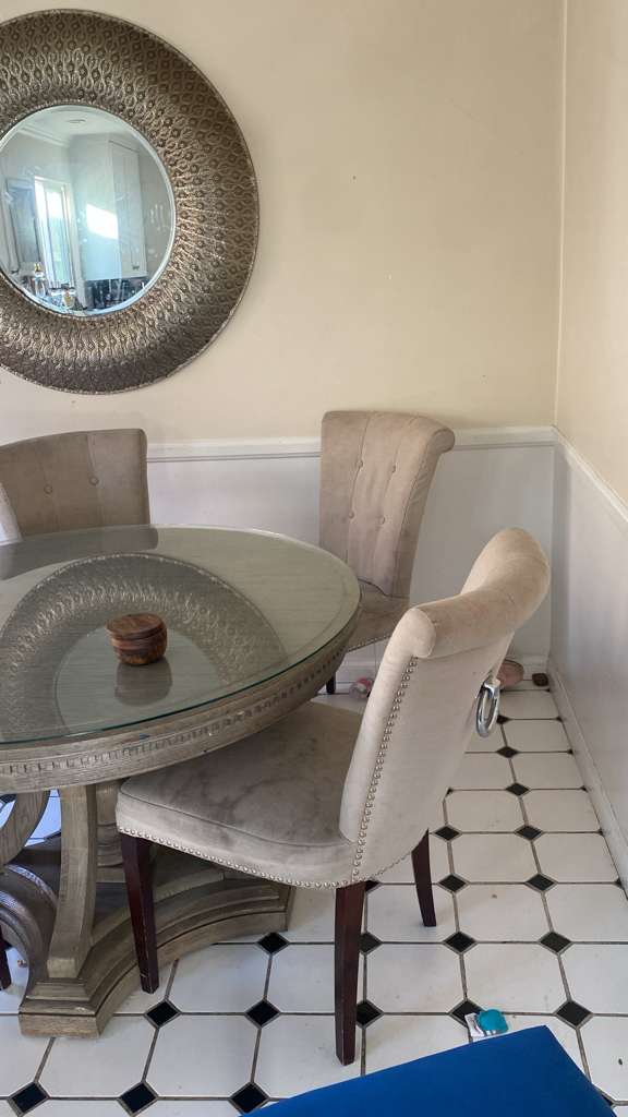 6 white chairs